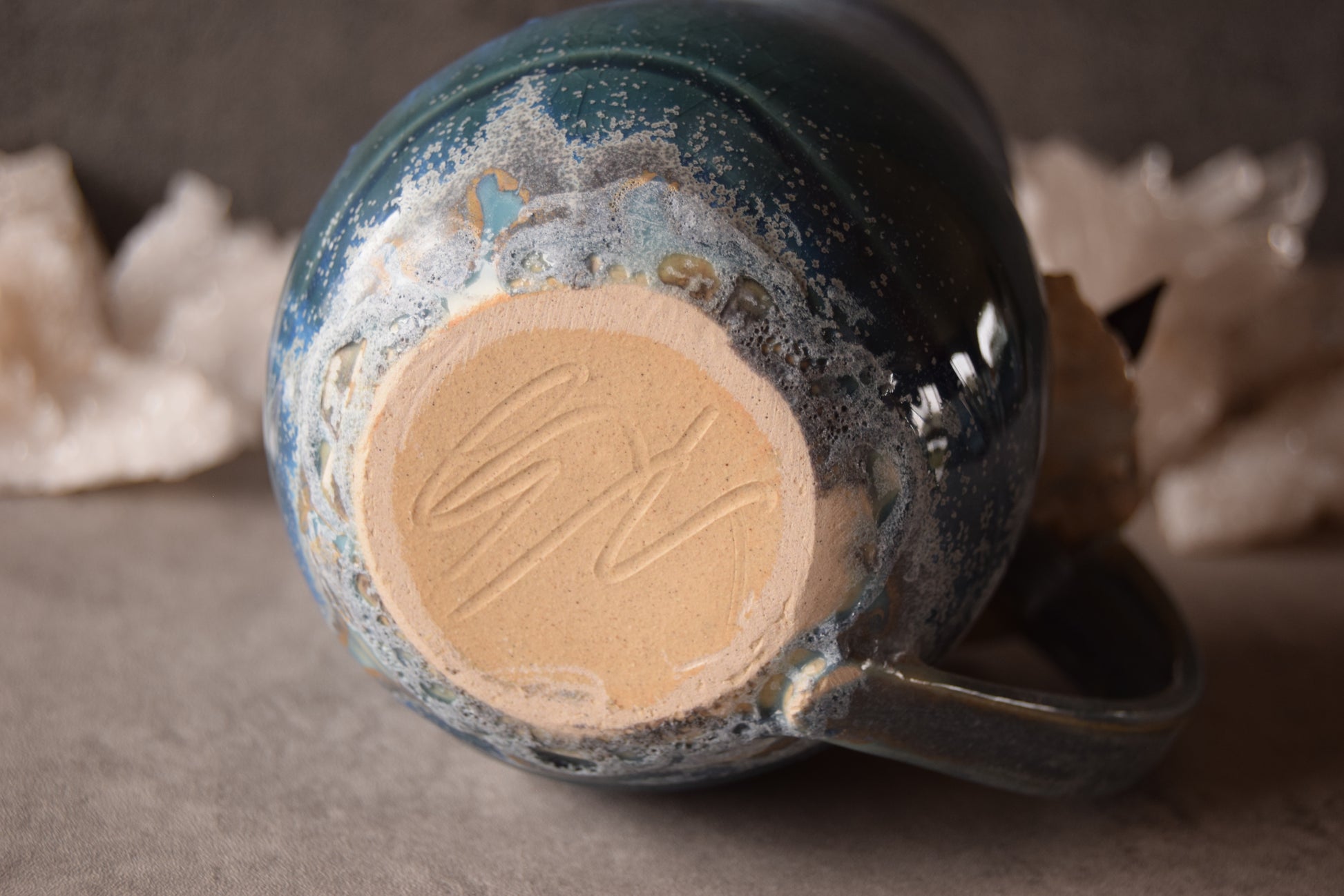 *this item is marked as "seconds" due to some glaze drips at the base of the mug and some small pinholes throughout the outside body of the mug (see detail photos). The drips have been sanded smooth and do not affect the final food safety or durability of the mug and are purely cosmetic.