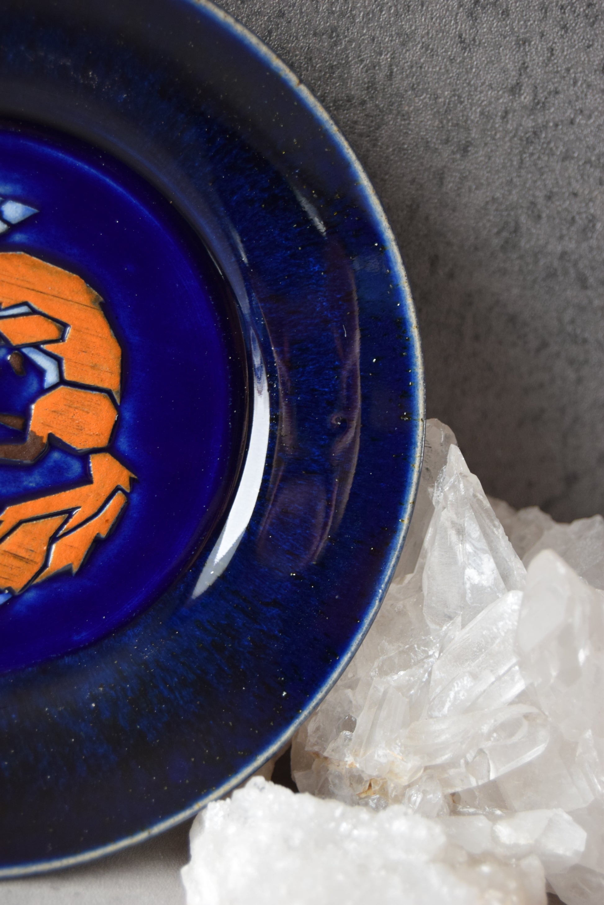 Handmade ceramic plate made in collaboration with Joelle Cook. Plate features original drawing by Joelle embossed into the clay and then hand painted and glazed by Kelsey. Plate measures approximately 5.25" diameter and .75" depth.