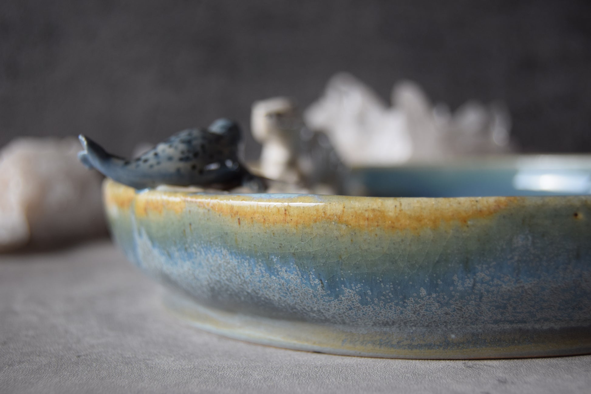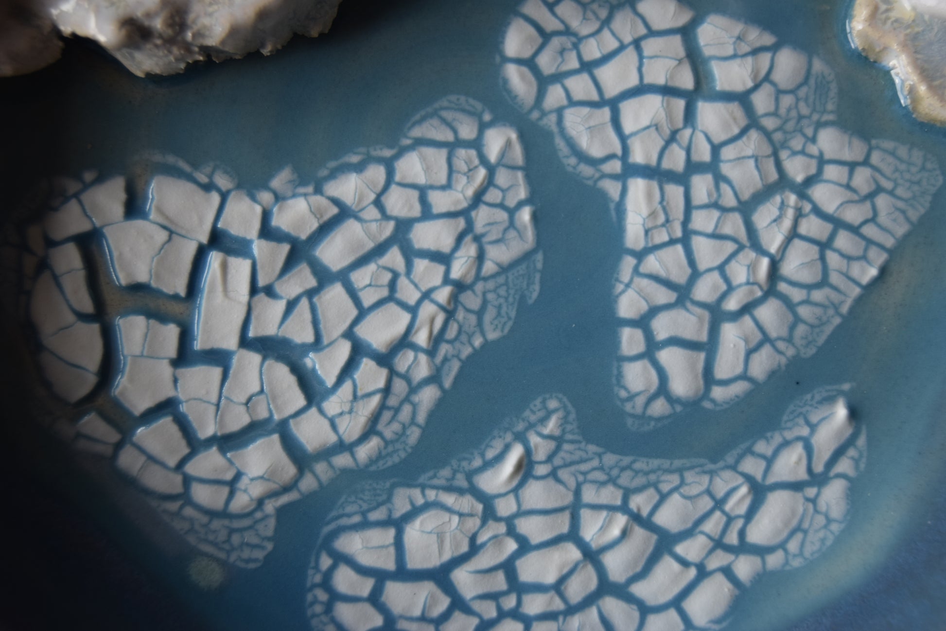 *This item is marked as "seconds" due to a crack in the center of the ice floe that developed during firing (see detail photos). The crack does not affect the final durability of the plate and is purely cosmetic.