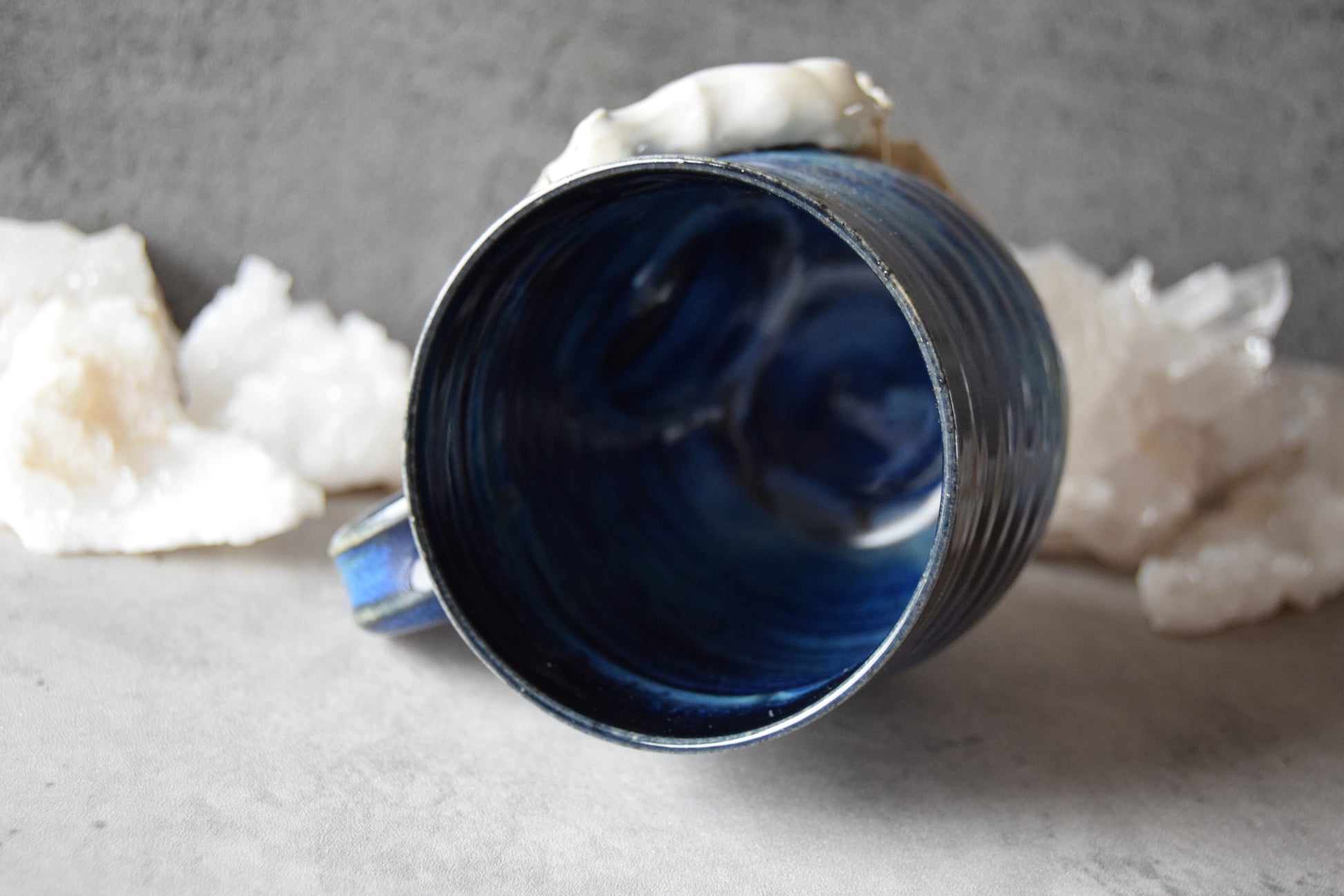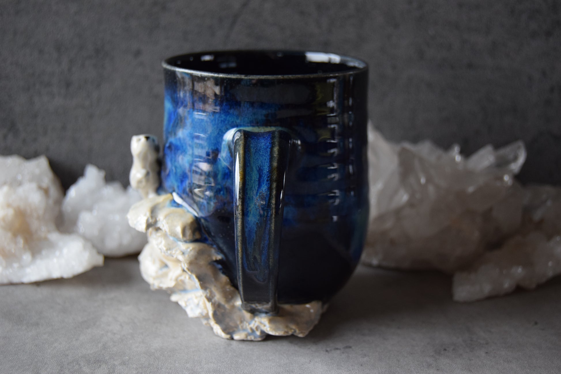Handmade mug featuring hand sculpted polar bear mom and two cubs in their den. Approximately 14 oz