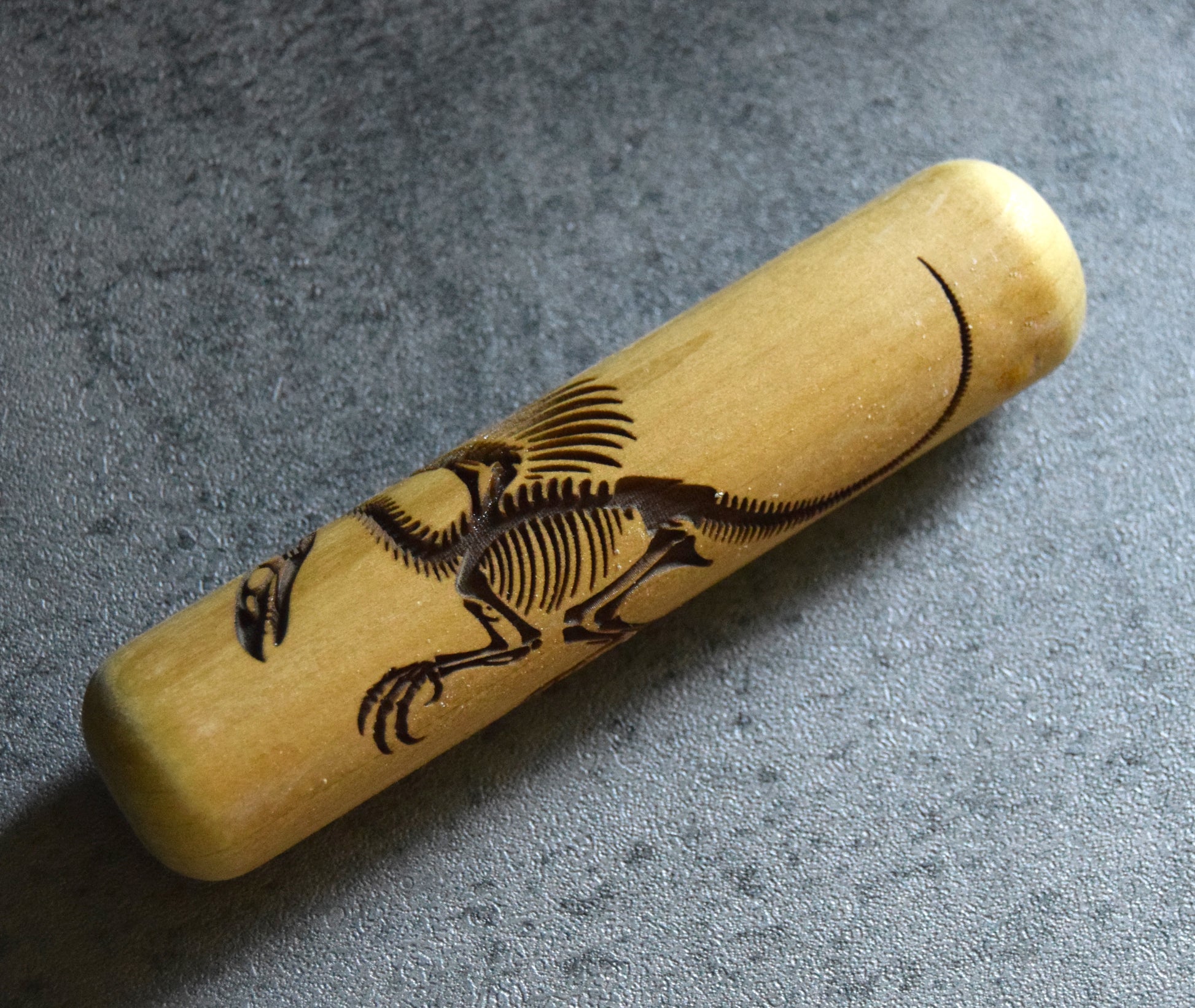 Handmade texture roller featuring laser engraved fossil pattern. Designed for imprinting clay or other similar materials, this roller is made of poplar wood and sealed with protective oil to preserve working quality of the wood. Roller is beveled and sanded smooth on each end for seamlessly integrating with other designs.