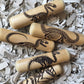 Roller measures approximately 5" in length, 1.25" diameter, and pattern measures approximately 3.5" at its widest point. Final color of the roller varies from pale pine color to hazelnut brown. Each roller is made of real wood and natural variations within the woodgrain are inevitable. Some variations in depth and texture may occur depending on the orientation of the grain within the roller and some patterns may show this more than others.