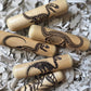 Roller measures approximately 5" in length, 1.25" diameter, and pattern measures approximately 3.5" at its widest point. Final color of the roller varies from pale pine color to hazelnut brown. Each roller is made of real wood and natural variations within the woodgrain are inevitable. Some variations in depth and texture may occur depending on the orientation of the grain within the roller and some patterns may show this more than others.