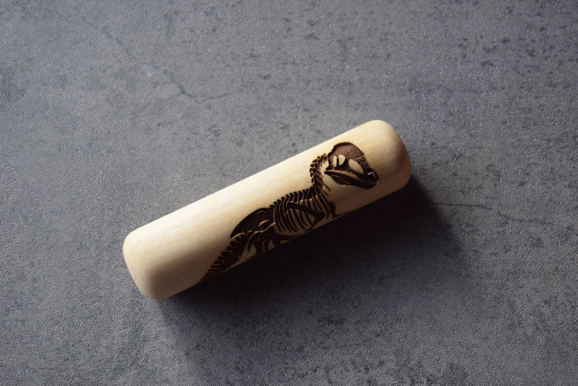 Handmade texture roller featuring laser engraved fossil pattern. Designed for imprinting clay or other similar materials, this roller is made of poplar wood and sealed with protective oil to preserve working quality of the wood. Roller is beveled and sanded smooth on each end for seamlessly integrating with other designs.
