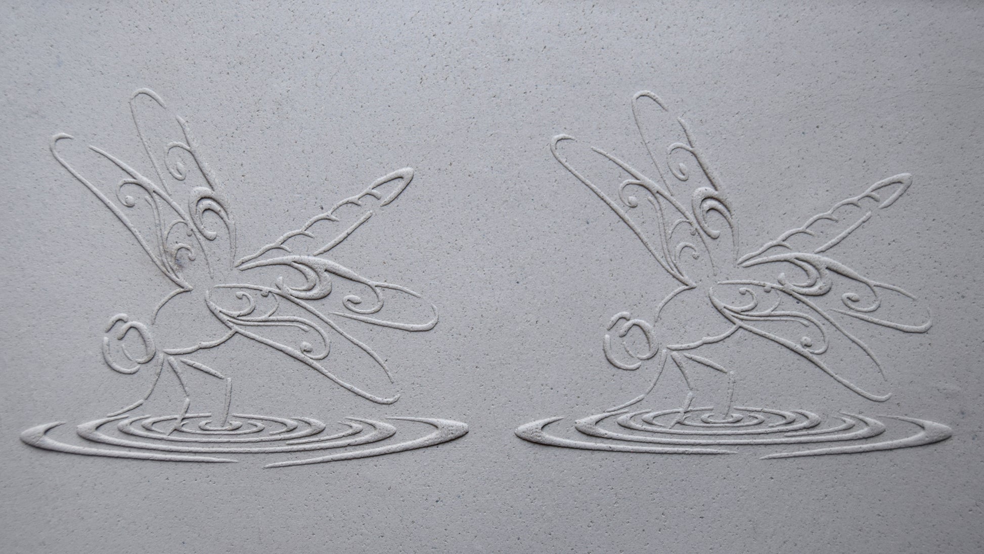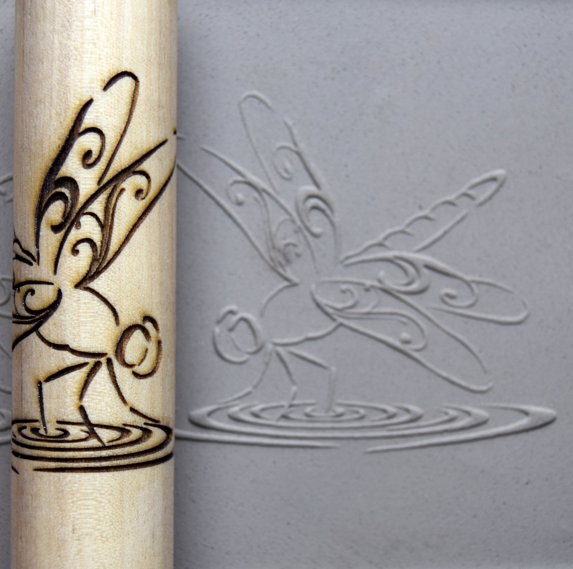 Handmade texture roller featuring laser engraved dragonfly pattern. Designed for imprinting clay or other similar materials, this roller is made of poplar wood and sealed with protective oil to preserve working quality of the wood. Roller is beveled and sanded smooth on each end for seamlessly integrating with other designs.