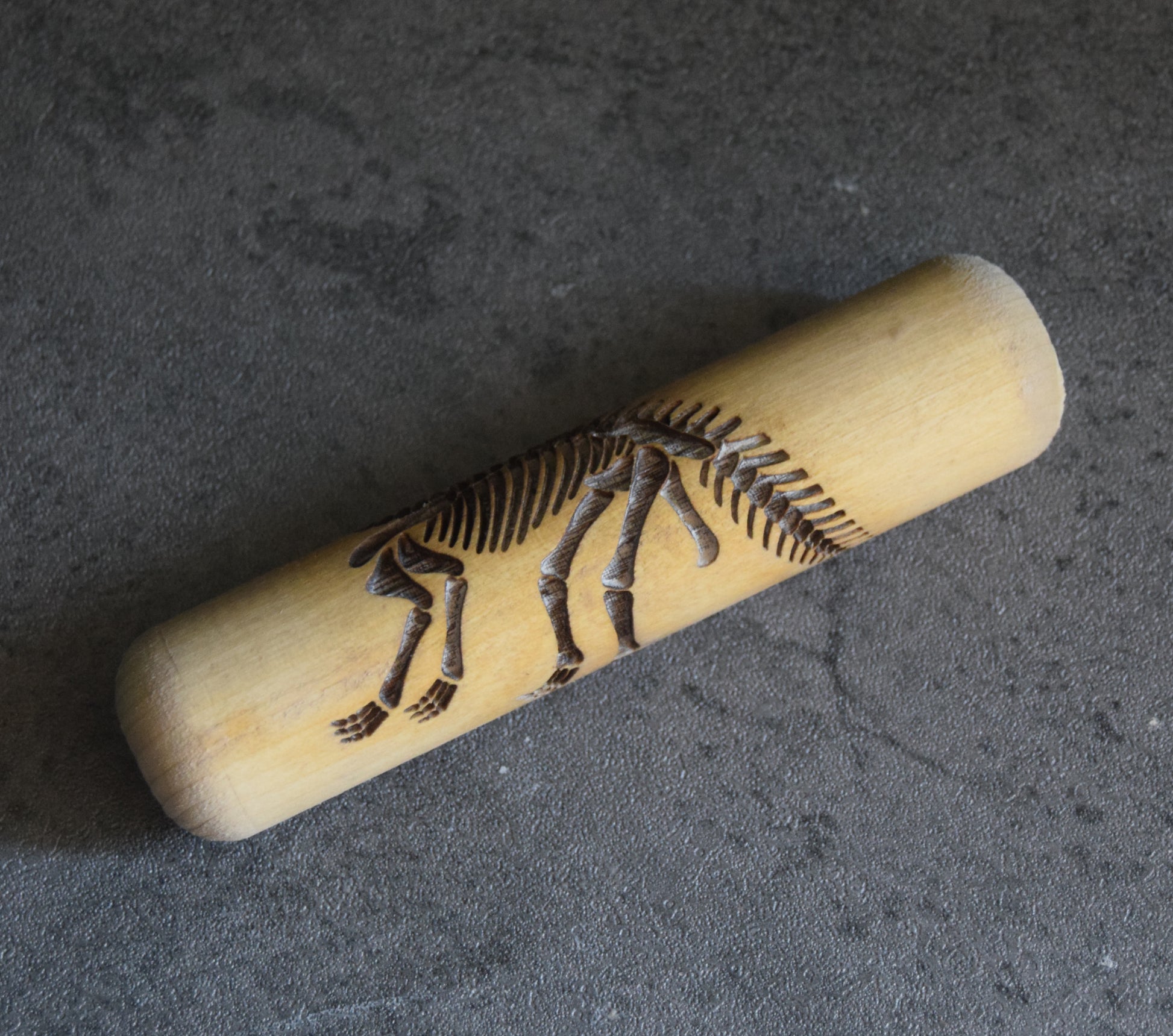 Handmade texture roller featuring laser engraved fossil pattern. Designed for imprinting clay or other similar materials, this roller is made of poplar wood and sealed with protective oil to preserve working quality of the wood. Roller is beveled and sanded smooth on each end for seamlessly integrating with other designs.