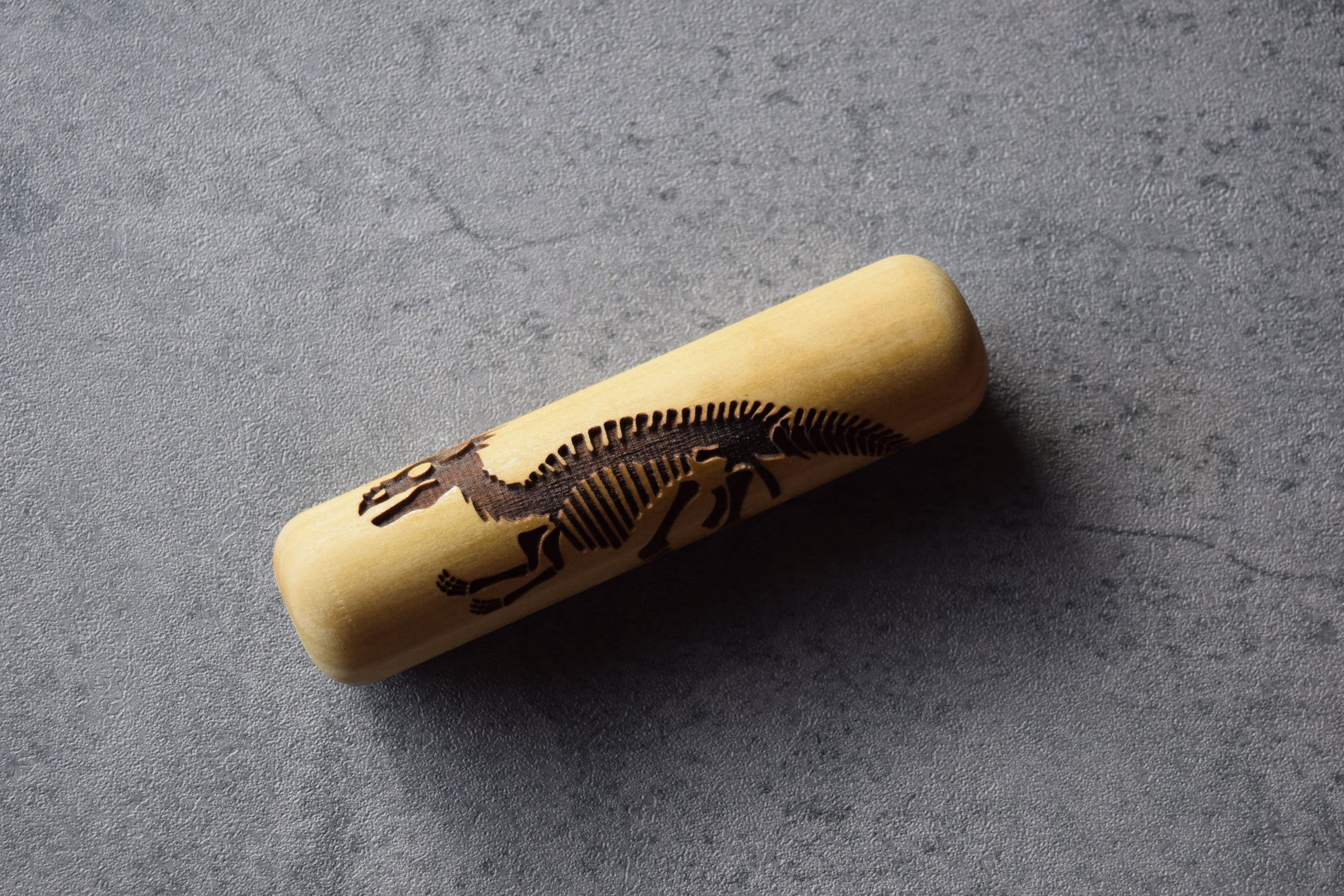 Handmade texture roller featuring laser engraved fossil pattern. Designed for imprinting clay or other similar materials, this roller is made of poplar wood and sealed with protective oil to preserve working quality of the wood. Roller is beveled and sanded smooth on each end for seamlessly integrating with other designs.
