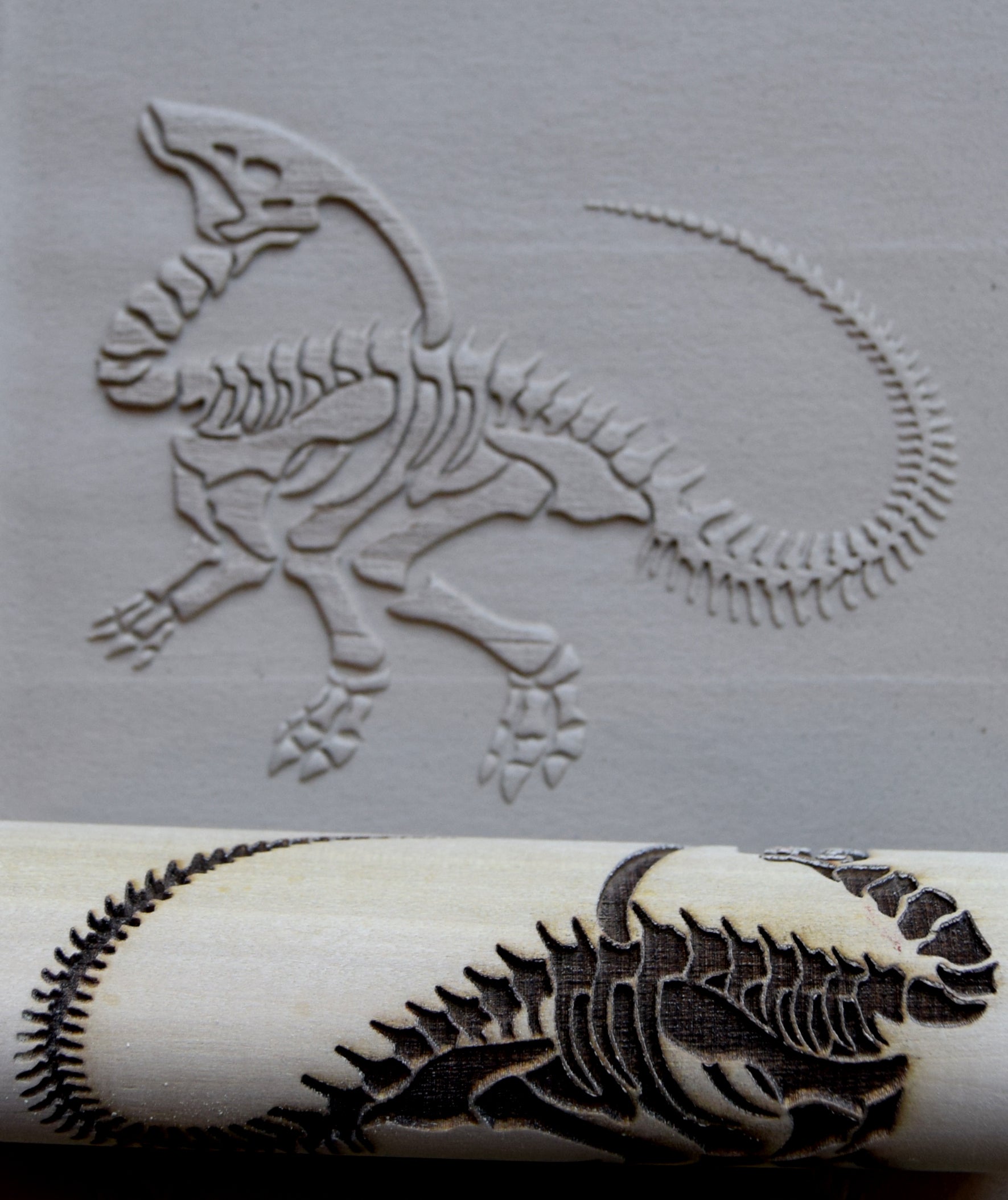 Handmade texture roller featuring laser engraved fossil pattern. Designed for imprinting clay or other similar materials, this roller is made of poplar wood and sealed with protective oil to preserve working quality of the wood. Roller is beveled and sanded smooth on each end for seamlessly integrating with other designs.