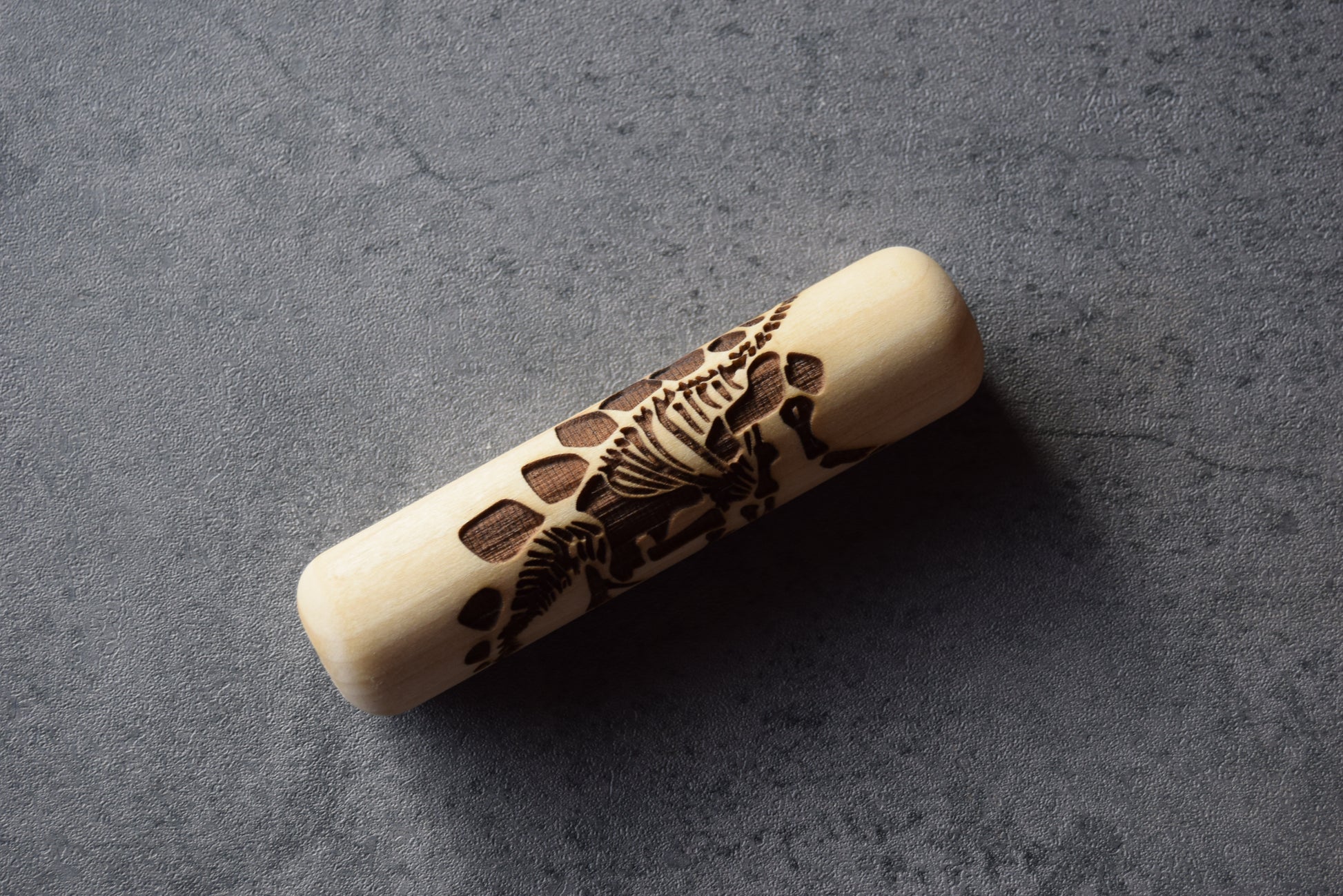 Handmade texture roller featuring laser engraved fossil pattern. Designed for imprinting clay or other similar materials, this roller is made of poplar wood and sealed with protective oil to preserve working quality of the wood. Roller is beveled and sanded smooth on each end for seamlessly integrating with other designs.