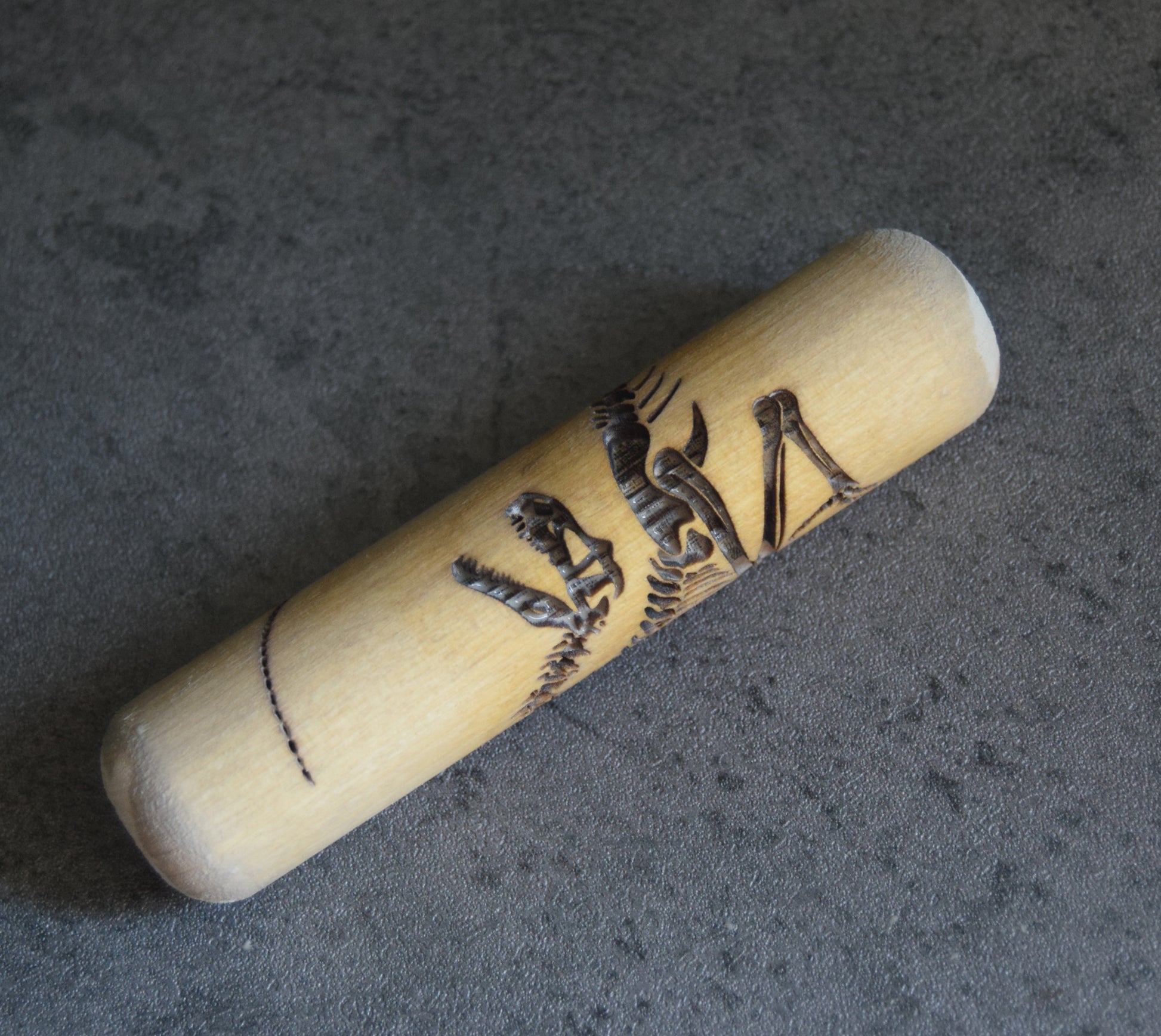 Handmade texture roller featuring laser engraved fossil pattern. Designed for imprinting clay or other similar materials, this roller is made of poplar wood and sealed with protective oil to preserve working quality of the wood. Roller is beveled and sanded smooth on each end for seamlessly integrating with other designs.